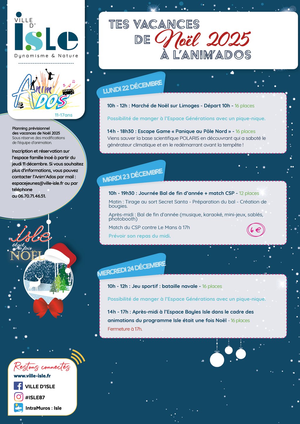 🧑💻 ADOS D'ISLE : VOS VACANCES DE NOËL 2025 À L'ANIM'ADOS SONT LANCÉES ! ❄️