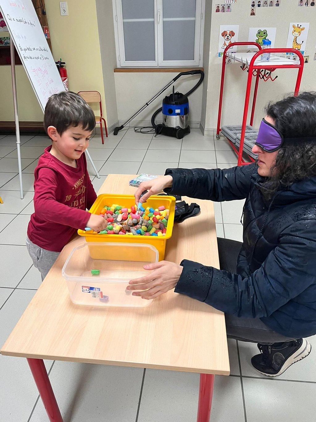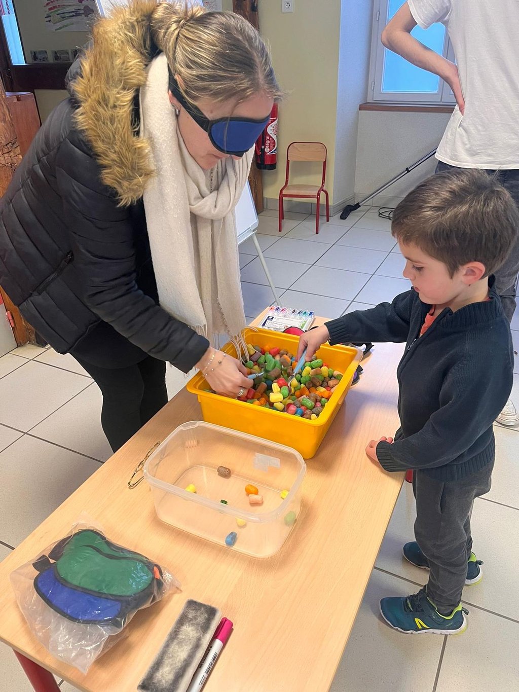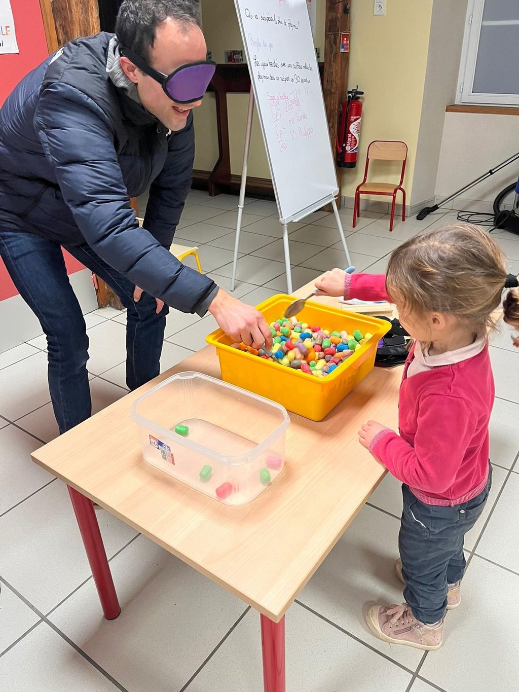 Le but ? Remplir la boîte avec le plus de playmais pour pouvoir gagner la coupe. Pour les parents, une complication : le faire à l’aveugle.