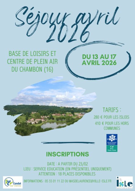La Ville d’Isle, en partenariat avec la Ville de Condat-sur-Vienne, organise une colonie de vacances à destination des enfants de 6 à 12 ans.
