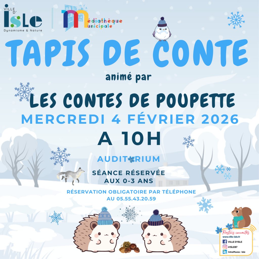 Gratuit - Inscription une semaine avant chaque conte par téléphone uniquement au 05.55.43.20.59