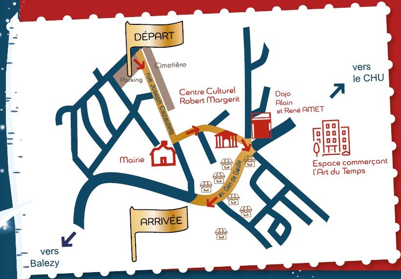 15h30 - 16h : cavalcade du Père Noël au départ du parking Square du Souvenir jusqu’à la place Laucournet avec animation musicale par la banda de Rochechouart. Le public est invité à suivre la déambulation. La circulation sera provisoirement et partiellement interdite sur le parcours pendant la durée de la manifestation. Le Père Noël arrivera Place Laucournet où il distribuera des friandises aux enfants.
