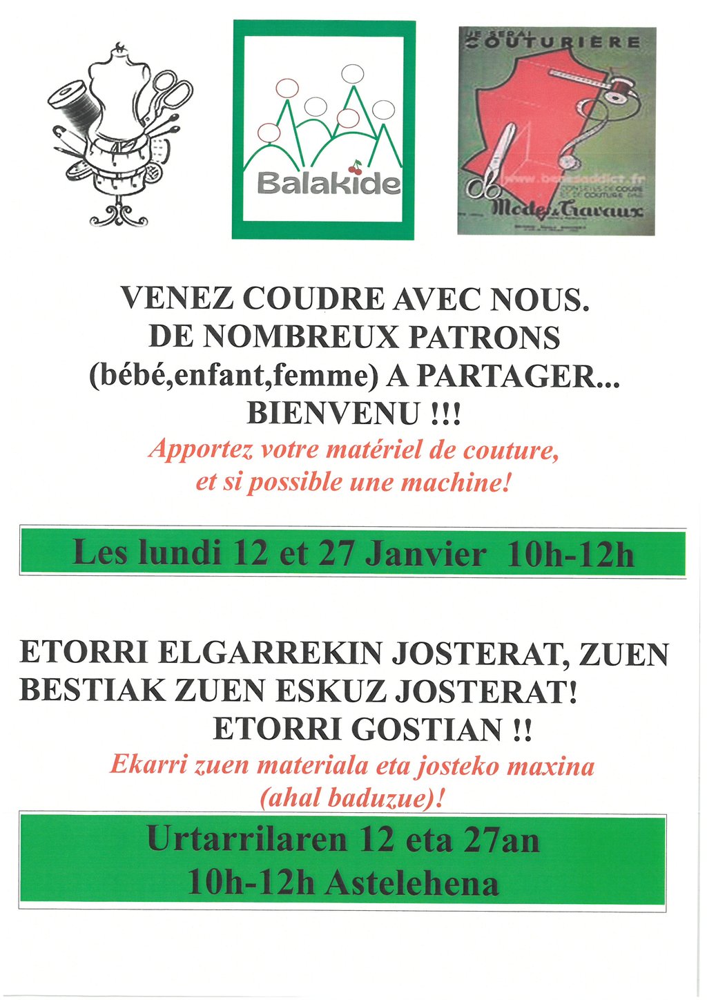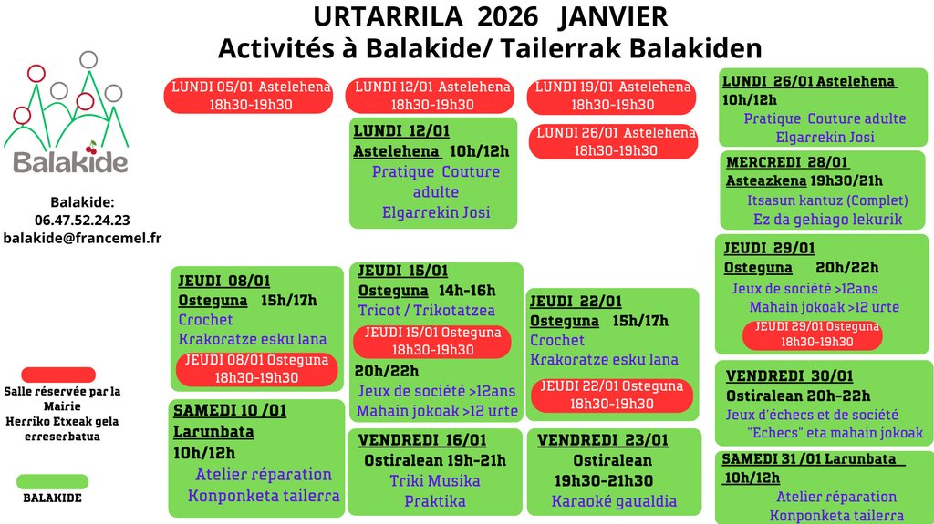 L'association Balakide organise différents ateliers pour ce mois de janvier.