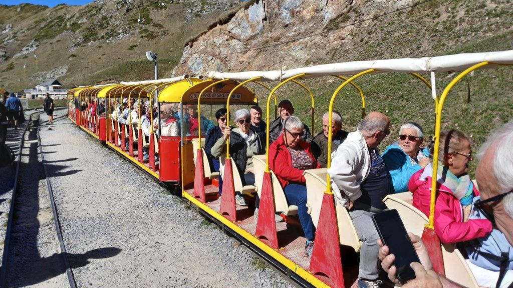 Après avoir pris le petit train et franchi le tunnel, un magnifique panorama s’est offert à nos yeux tout le long du cheminement sur rail entre précipice et haute montagne. Petit clin d’œil à deux marmottes avant d’arriver au lac. 15 minutes à pied pour mériter le lac d’Artouste et son eau cristalline, sans rien perdre de la vue splendide sur la vallée d’Ossau depuis les 2000 mètres d’altitude. Satisfaction générale. Très très belle journée.
