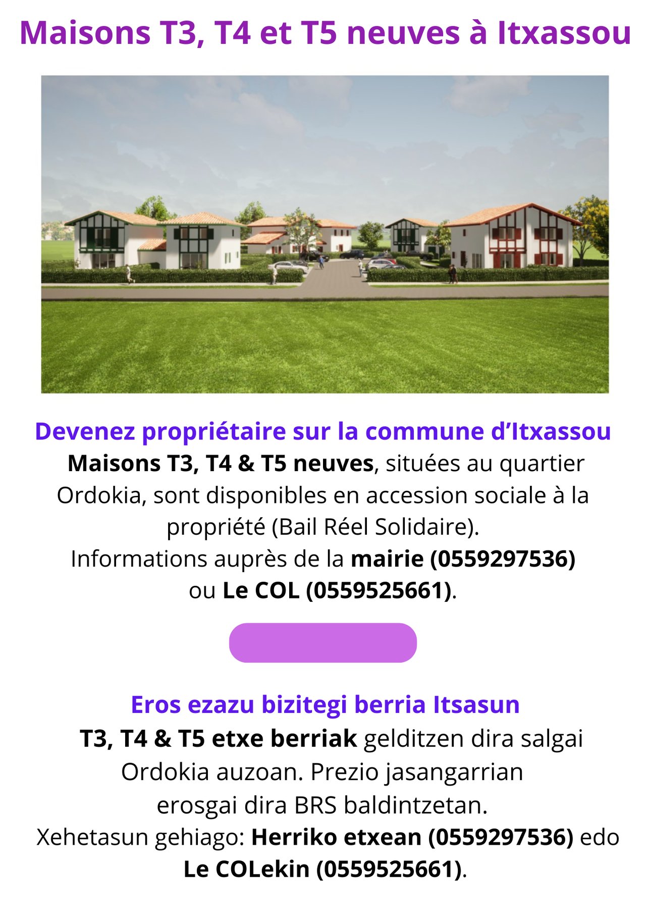 MAISONS T3, T4 ET T5 NEUVES À ITXASSO...
