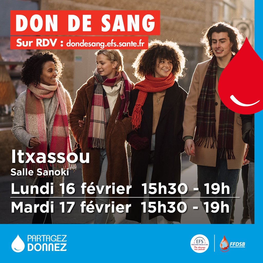 Otsailaren 16 eta 17an, 15'30etatik 19'etara Sanoki gelan. Izen emaiteak: dondesang.efs.sante.fr
