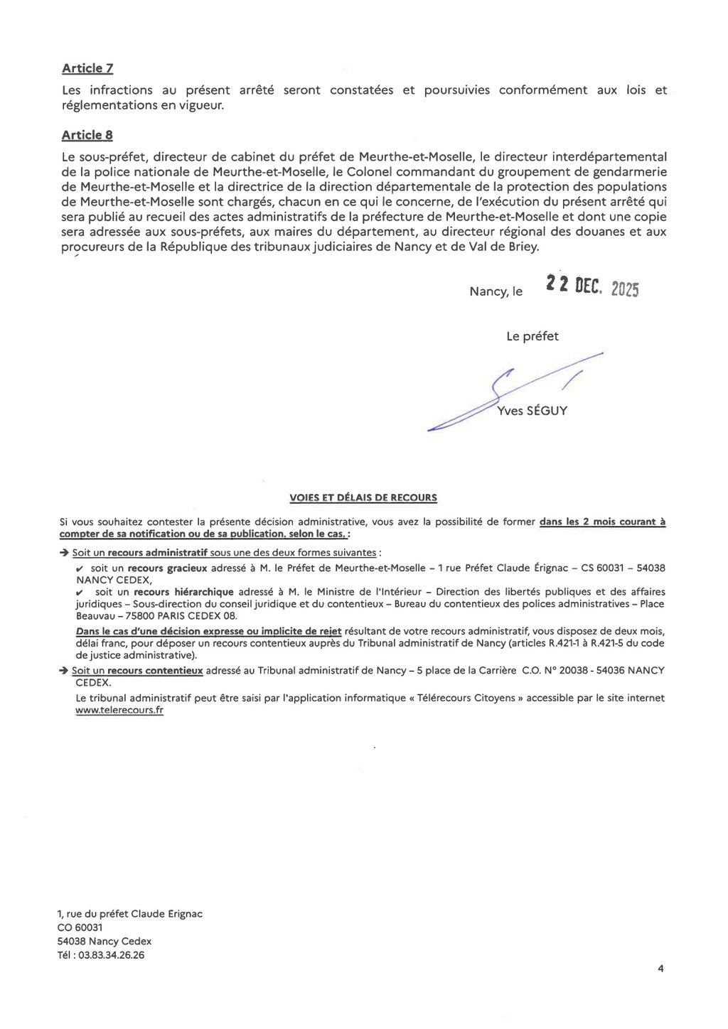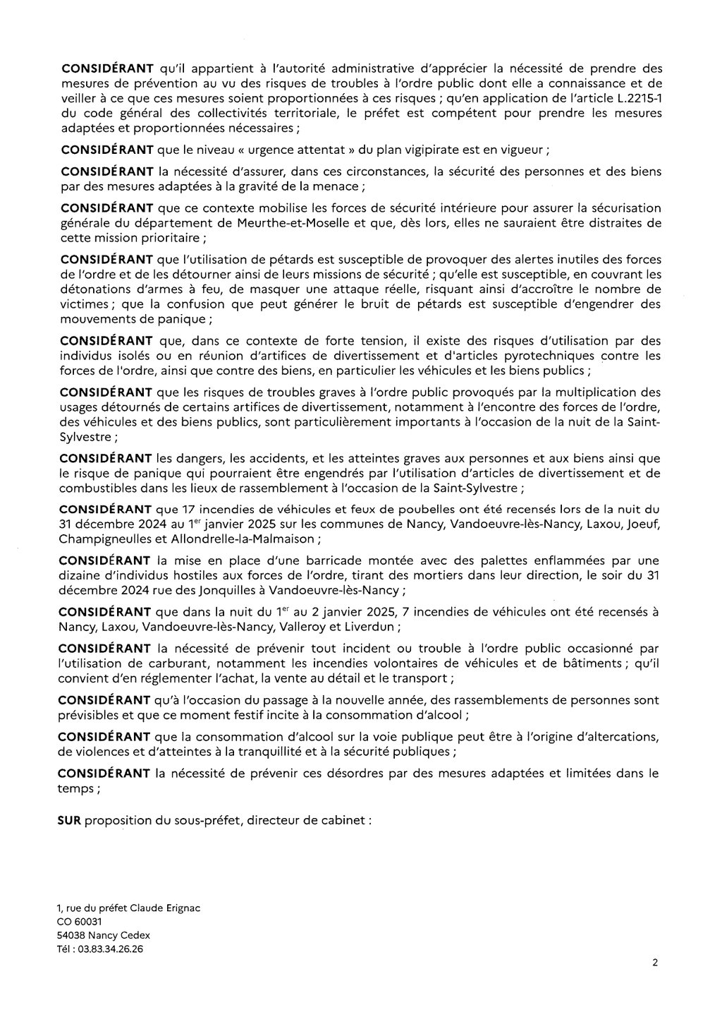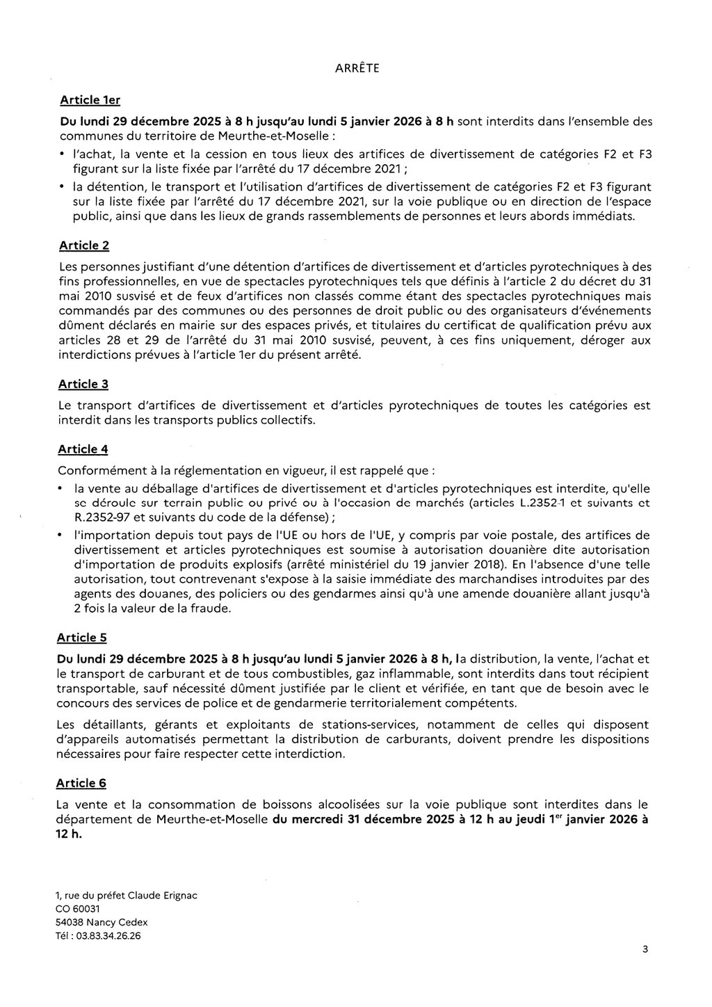 arrêté préfectoral de ce jour par lequel le préfet de Meurthe-et-Moselle réglemente, de manière temporaire pour la période de Nouvel An :