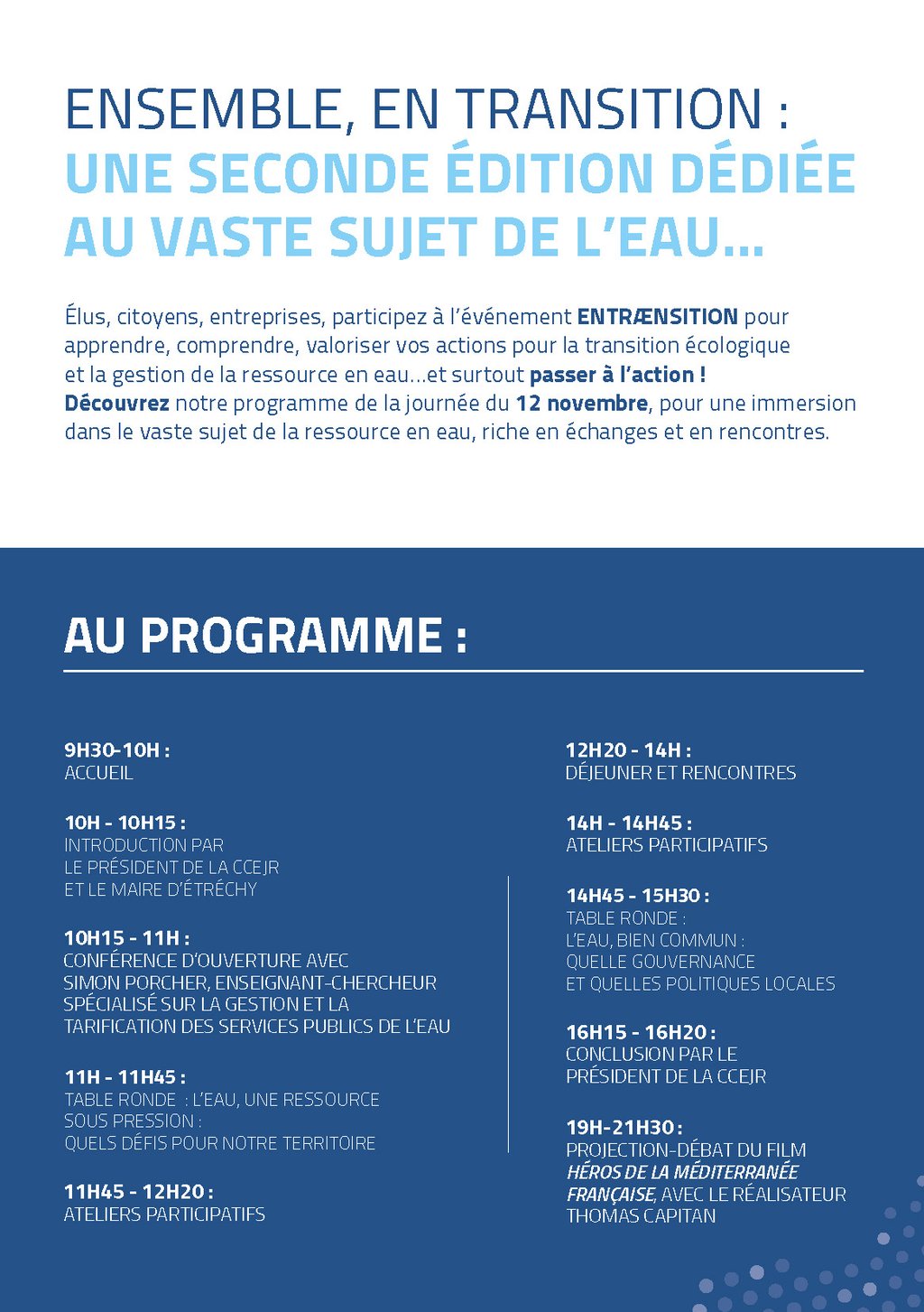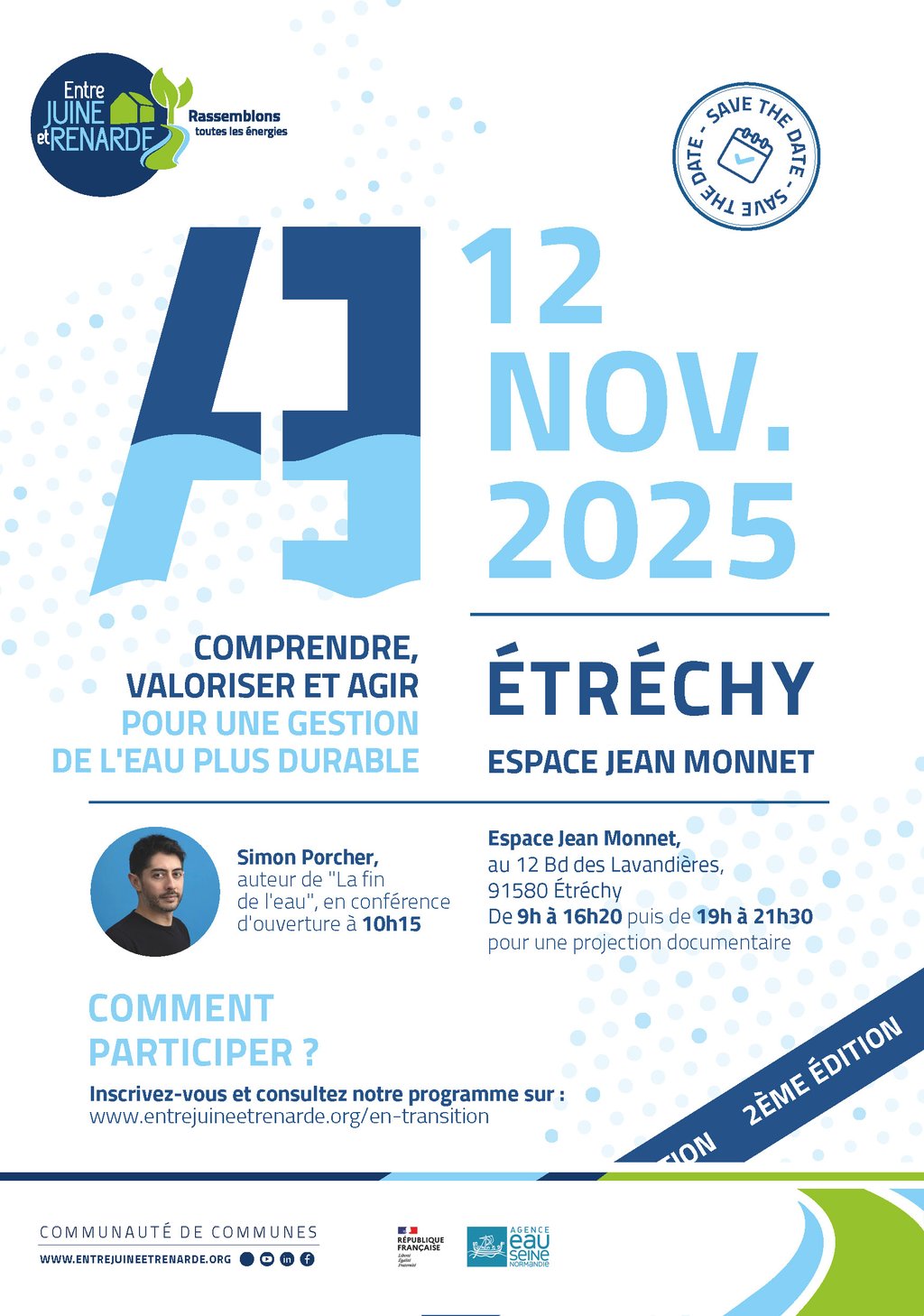 L’événement ENTRÆNSITION porté par votre Communauté de Communes Entre Juine et Renarde revient cette année pour sa deuxième édition avec une journée entièrement consacrée à un enjeu majeur : la ressource en eau et sa gestion.
