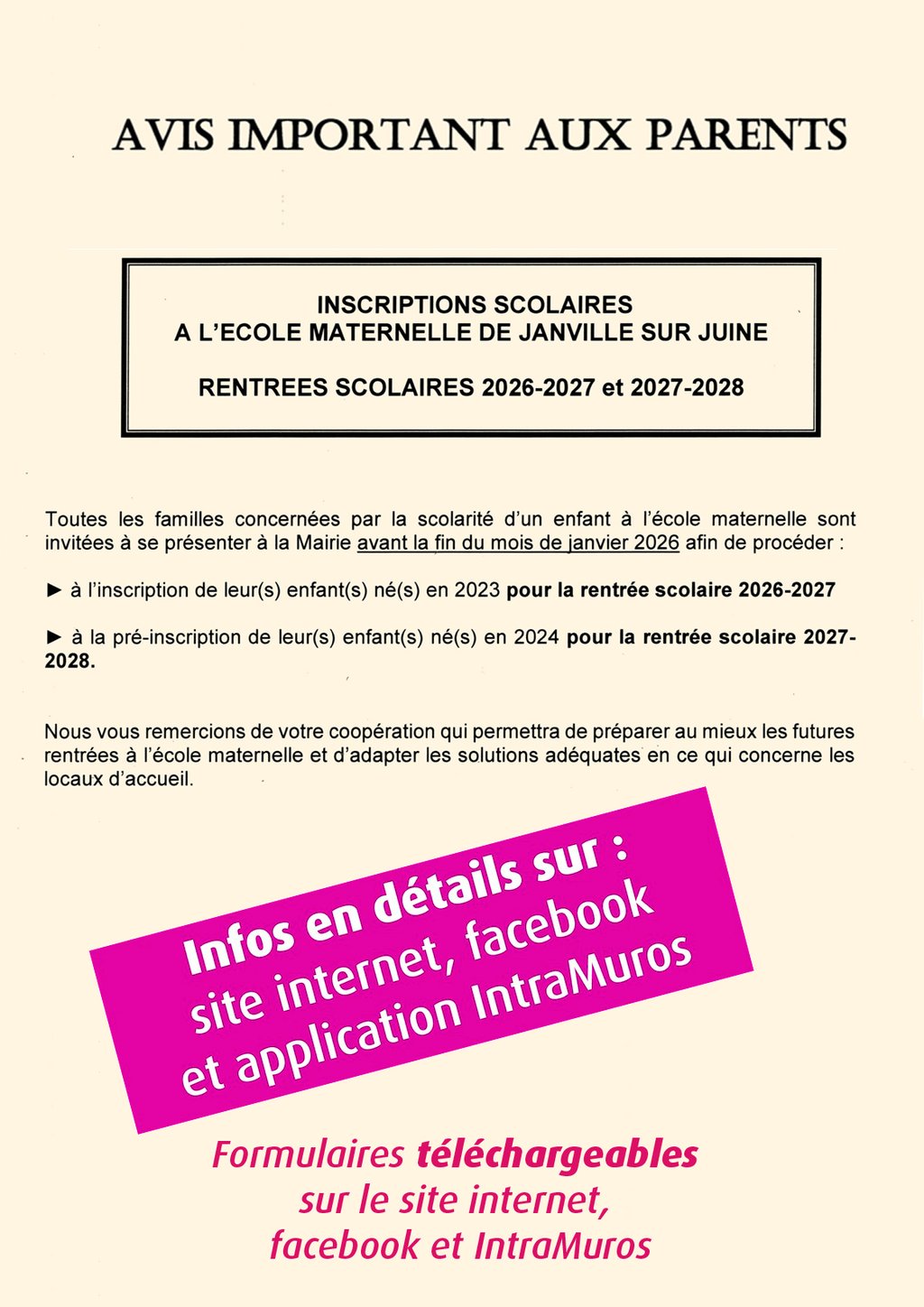 Imprimé pré-inscription école maternelle 2027-2028 : ICI