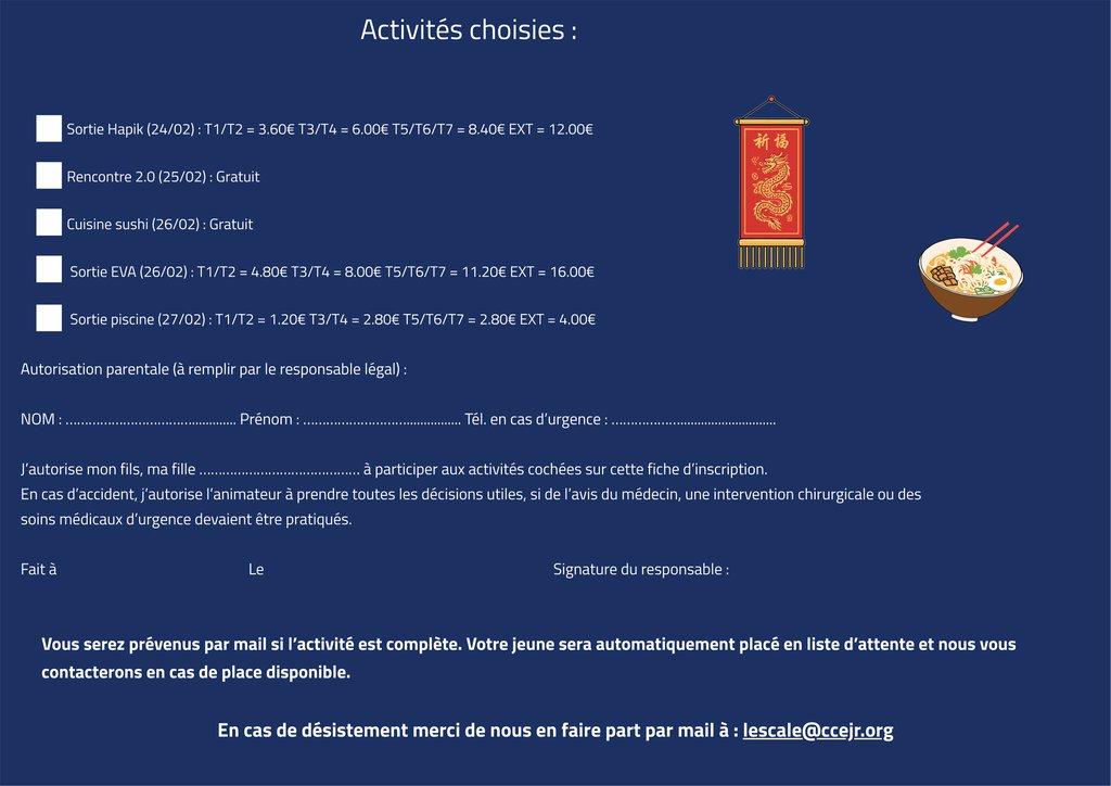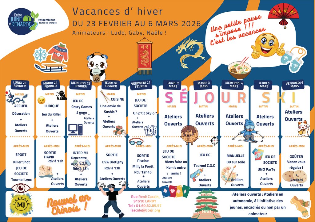 La Maison des Jeunes "l'Escale" vous propose son programme pour les vacances d’hiver du 23 Février au 6 Mars 2026 !