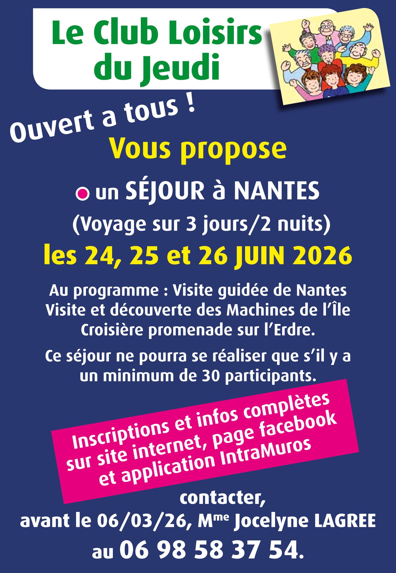 Mme Jocelyne LAGREE au 06 98 58 37 54.