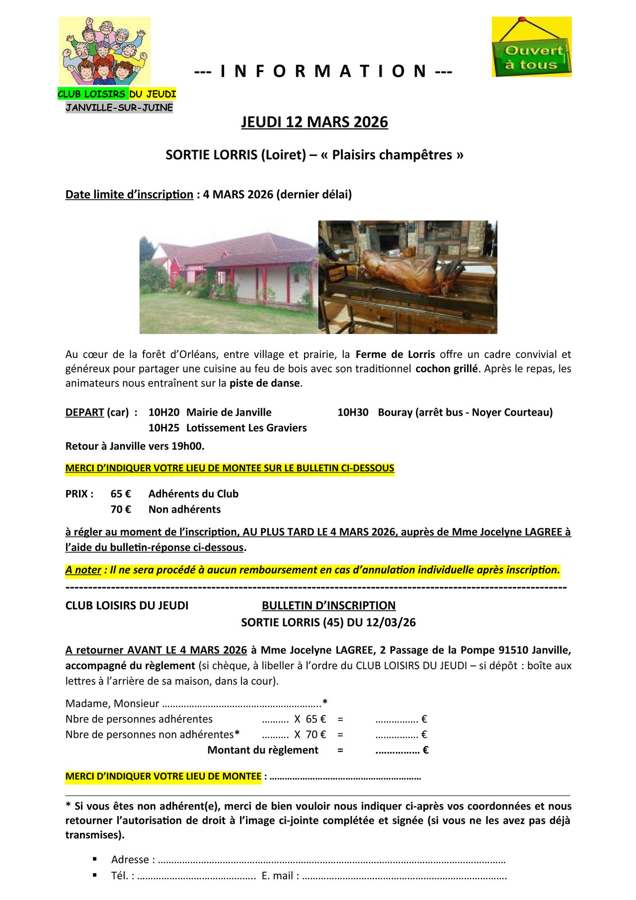 Toutes les informations sur la sortie et bulletin d'inscription sur le lien ci-dessous ou en 2éme image.