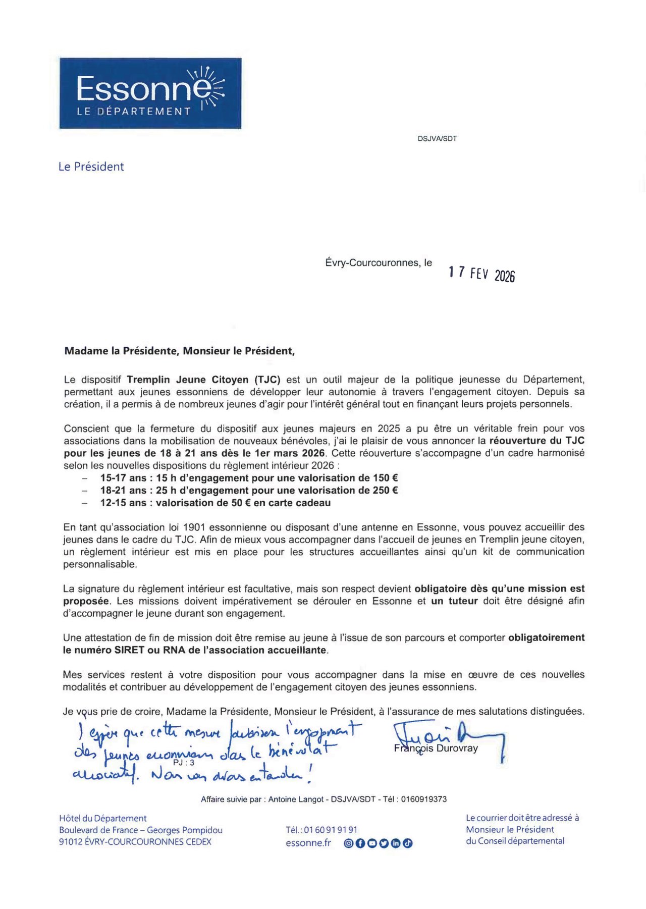 Le courrier de Monsieur le Président adressé spécifiquement aux associations essonniennes. ICI