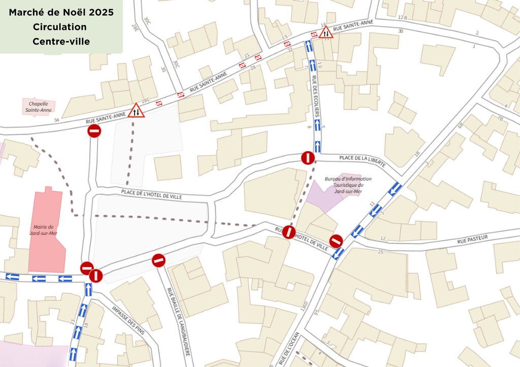 Le centre-ville se prépare à accueillir le marché de Noël : la circulation et le stationnement seront temporairement perturbés du 17 au 23 décembre 2025.