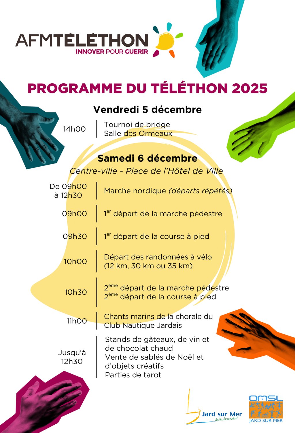 Cette année encore, l'Office Municipal des Sports et Loisirs et les associations jardaises se mobilisent pour l'édition 2025 du Téléthon. Cet évènement permet à l’AFM-Téléthon de récolter des fonds pour la recherche et l’accompagnement des personnes atteintes de maladies génétiques.