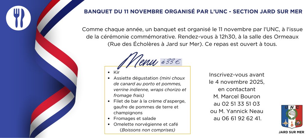 BANQUET du 11 novembre 2025 à 12h30, à la grande salle des Ormeaux.