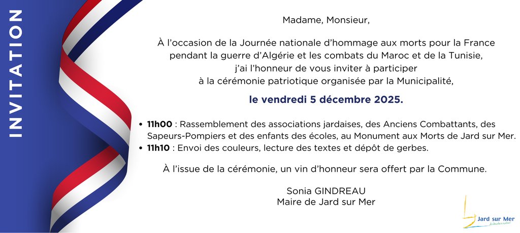 Dans le cadre de la Journée nationale d’hommage aux morts pour la France durant la guerre d’Algérie et les combats au Maroc et en Tunisie, une cérémonie commémorative se déroulera le 5 décembre à 11h00 devant le Monument aux Morts.