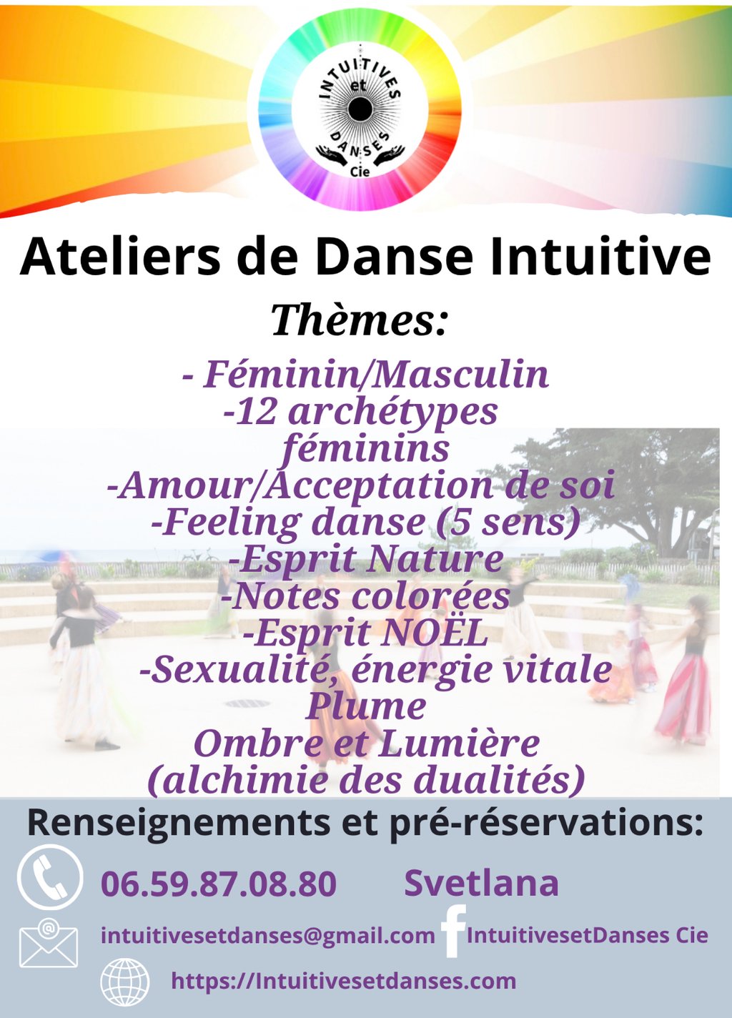 Entrer en harmonie avec son corps et son mental par une pratique du geste et du souffle, c'est possible à tout âge sans avoir appris la danse. Les ateliers de danses intuitives proposés par Danses et Cie et animés par Svetlana Koretskaïa (danseuse et sophrologue) sont basés sur des exercices de respiration et de visualisation, alternant avec des temps de danse douce guidée ou libre. Pré-inscription par téléphone requise. Les stages ont lieu sous réserve d'un nombre suffisant d'inscrits.