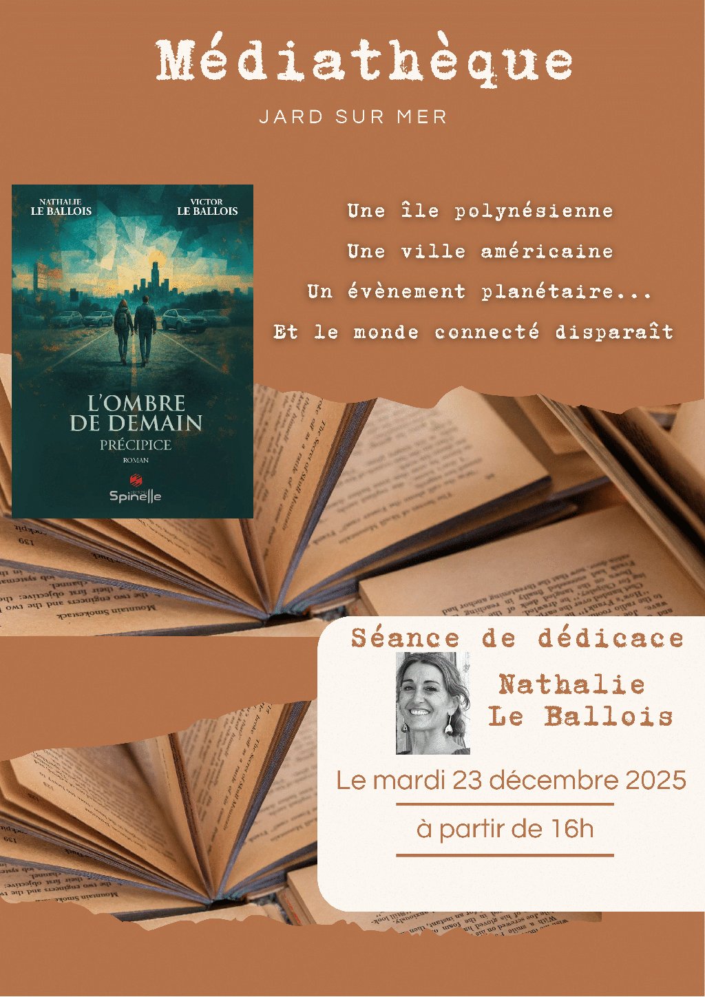 La médiathèque de Jard accueille une rencontre et une séance de dédicace avec l’auteur Nathalie Le Ballois le mardi 23 décembre 2025.
