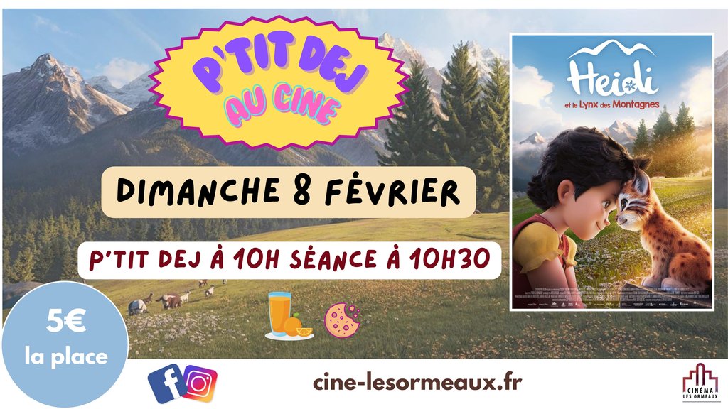 Venez participer à notre séance CINÉ P’TIT DÉJ avec la projection du film d’animation HEIDI ET LE LYNX DES MONTAGNES, le dimanche 8 février.