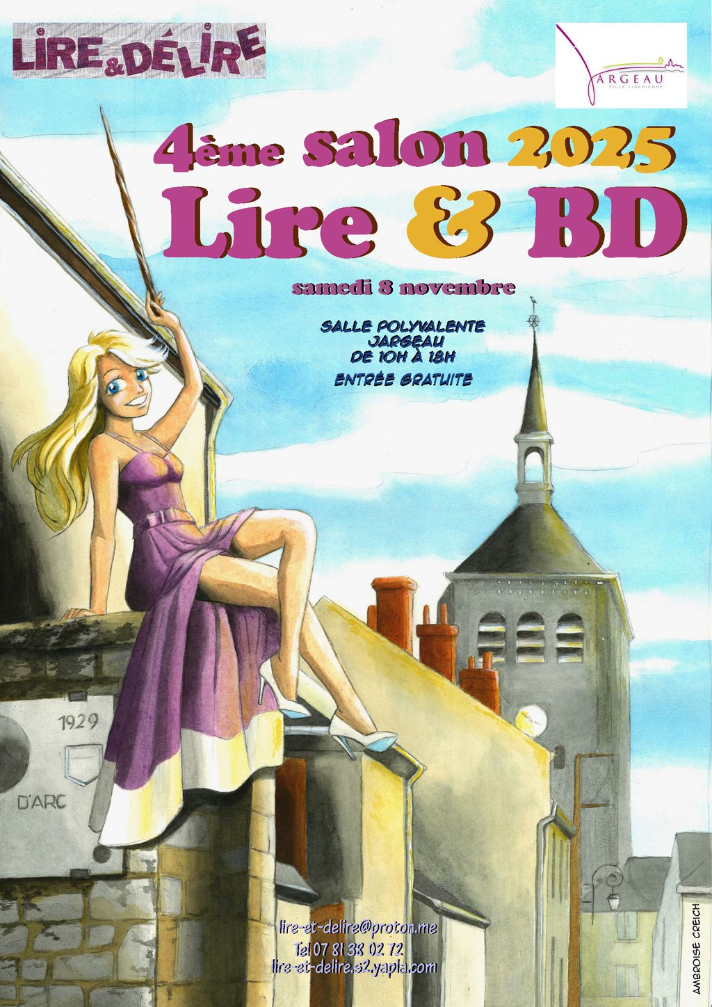 Organisé par l'association Lire & Délire. Une dizaine d'auteurs/dessinateurs seront au rendez-vous : Simon HUREAU, Ambroise CREICH, Stanislas GROS, Philippe TARRAL, Moon LI... Stands de vente des albums des auteurs présents, d'albums d'occasion, d'albums dégriffés, de jeux autour de la lecture.