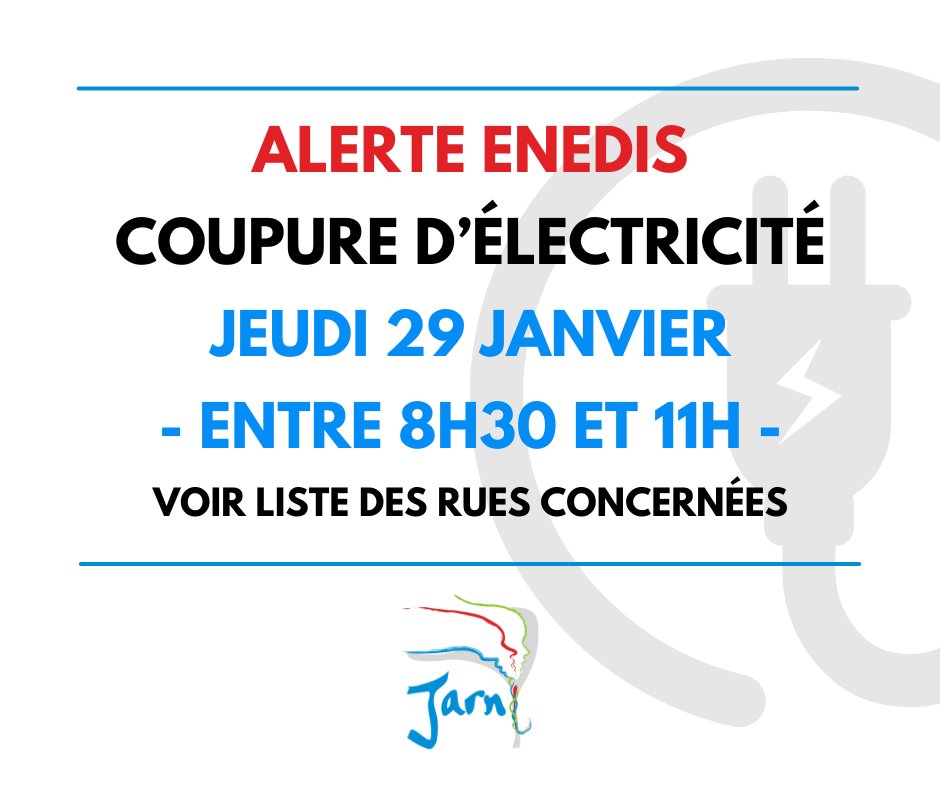 ⚡️ ENEDIS vous informe qu'en raison de travaux sur le réseau, des coupures d'électricité auront lieu JEUDI 29 JANVIER 2026 :