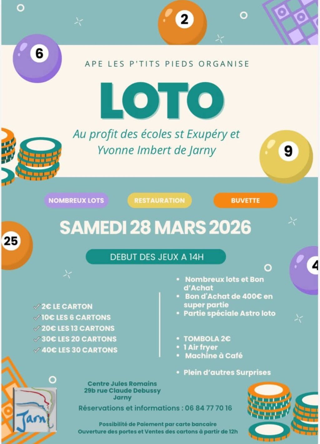 Les inscriptions sont ouvertes pour le loto organisé par l’APE Les p’tits pieds ! 👣