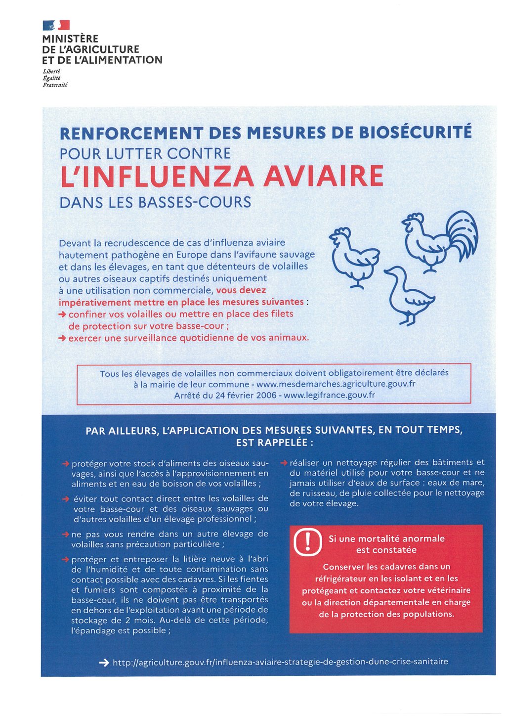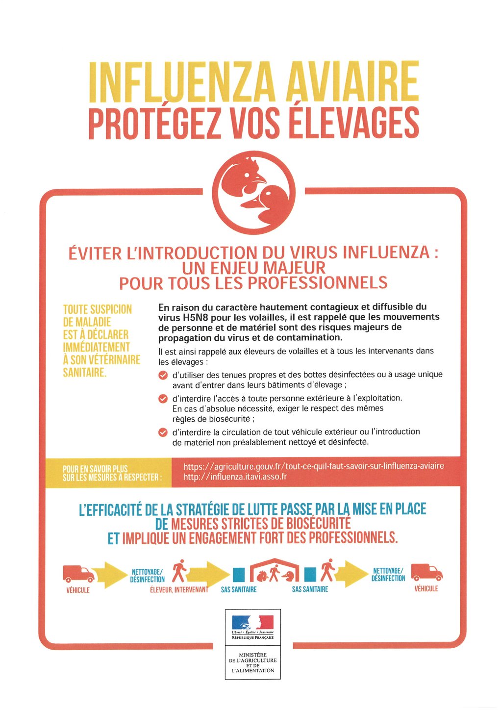 ÉVOLUTION DE LA SITUATION SANITAIRE CONCERNANT LA GRIPPE AVIAIRE ET LE PASSAGE EN RISQUE "ÉLEVÉ" POUR TOUT LE TERRITOIRE
