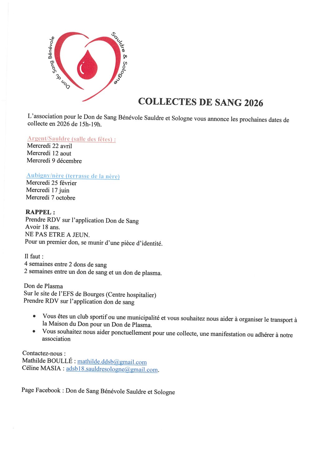Don de Sang Bénévole Sauldre et Sologne.