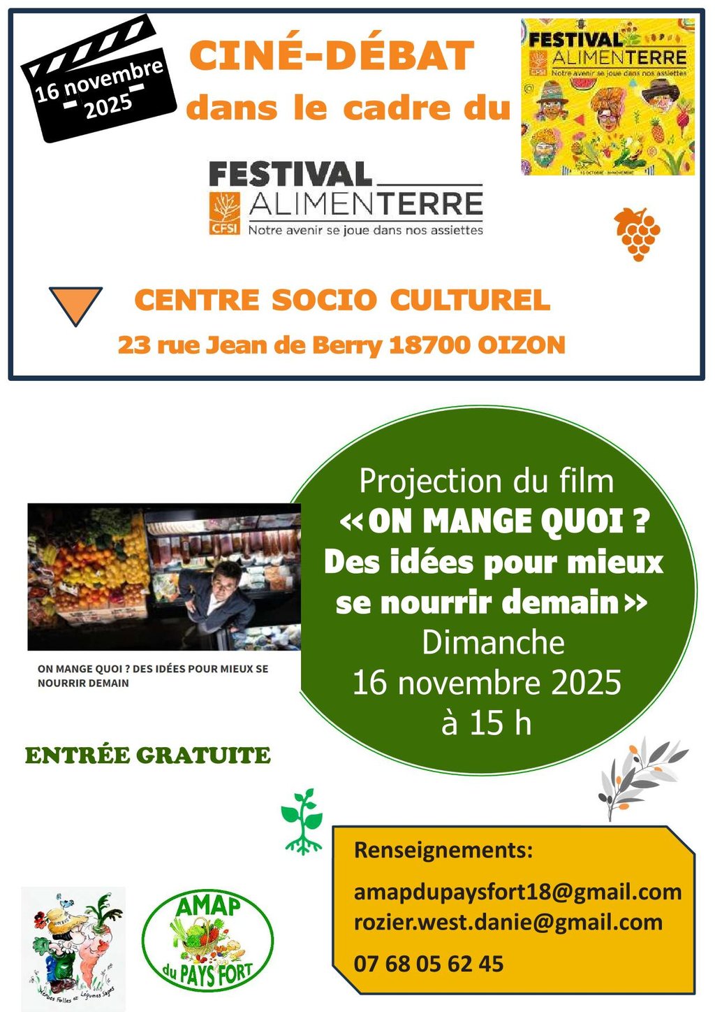 FESTIVAL ALIMENTERRE : PROJECTIONS PROPOSÉES PAR L' AMAP DU PAYS FORT **ET SES PARTENAIRES
