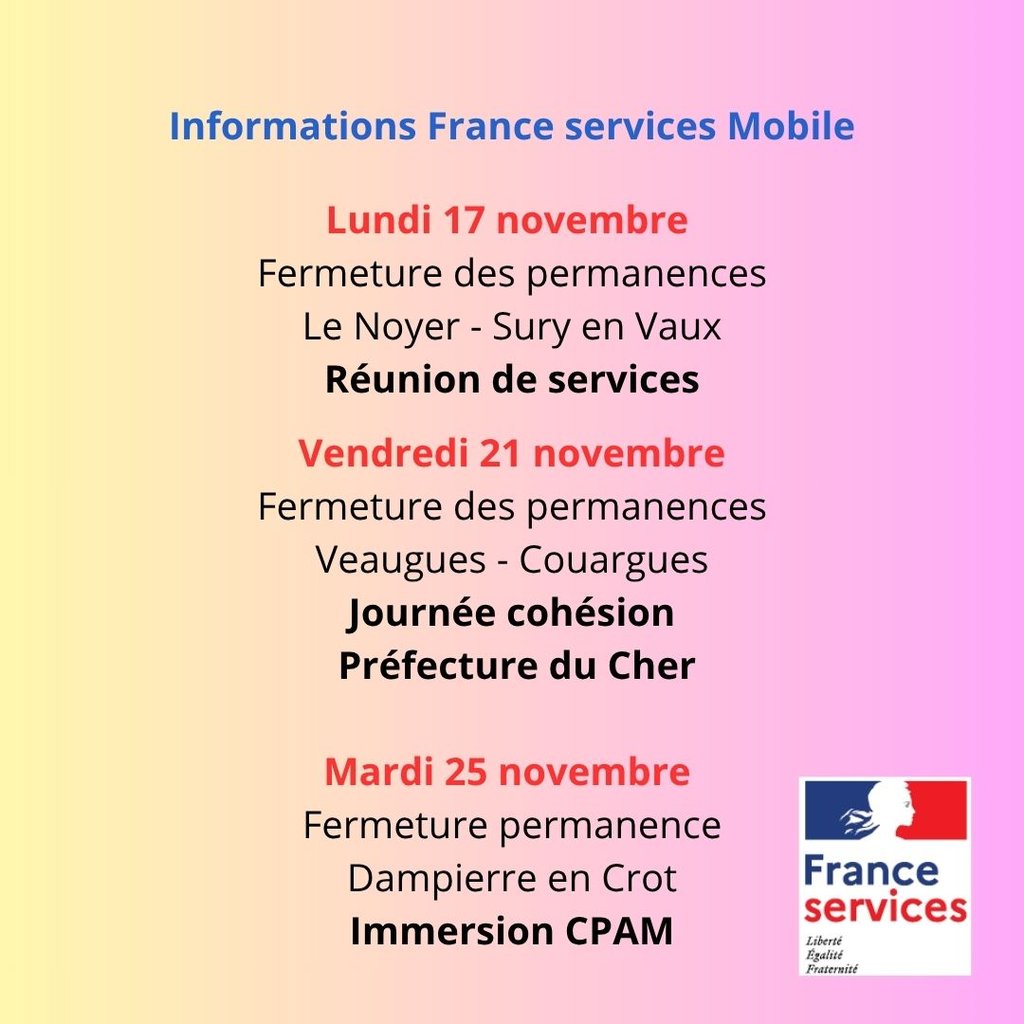 - Lundi 17 novembre (Le Noyer – Sury en Vaux) : réunion de service,