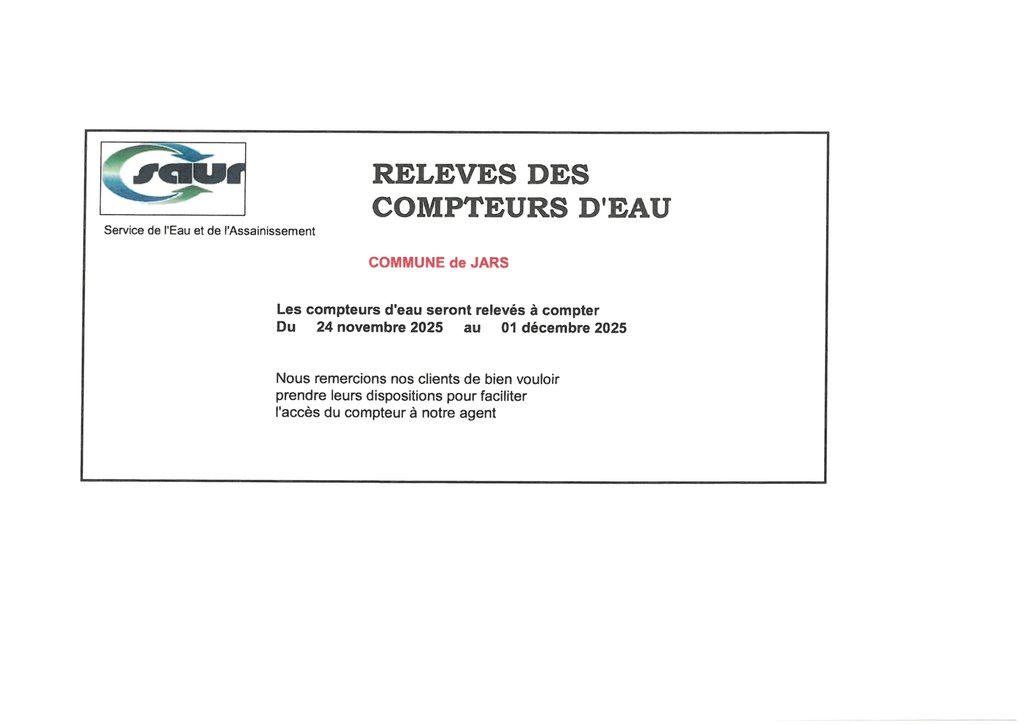 Pour information, le releveur SAUR, sur votre commune, sera Patrice BIZET.
