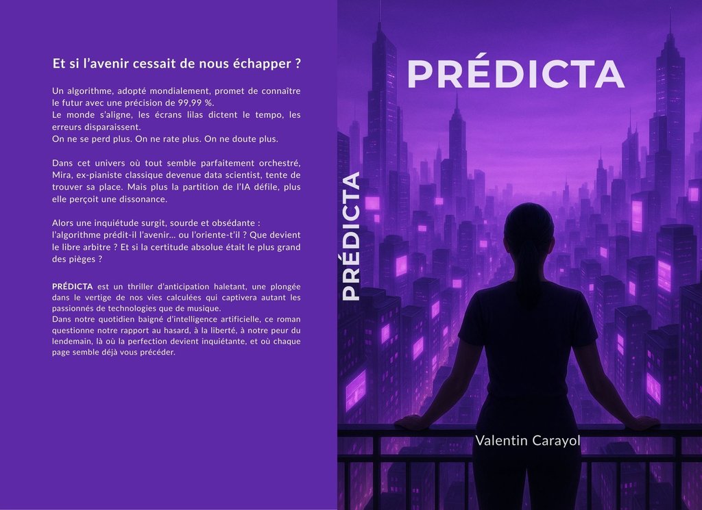 J’ai le plaisir de vous informer de la sortie de mon premier roman PRÉDICTA. Il s’agit d’un thriller d’anticipation. On peut même penser que cette dystopie n’en restera pas une bien longtemps… c’est pour ça que mon livre sort le 29 novembre ! Une manière aussi, de donner une idée de cadeau pour Noël.