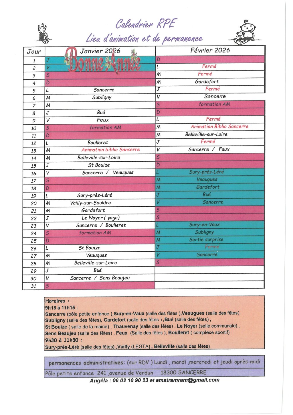 Vous trouverez ci-joint le nouveau planning du relais petite enfance AMSTRAMRAM.