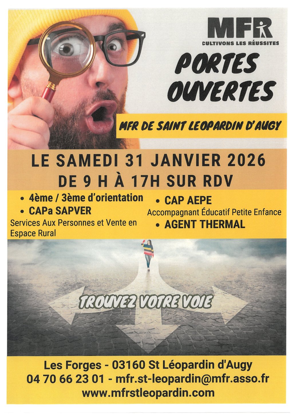 PORTES OUVERTES SAMEDI 31 JANVIER 2026 DE 9 H À 17 H