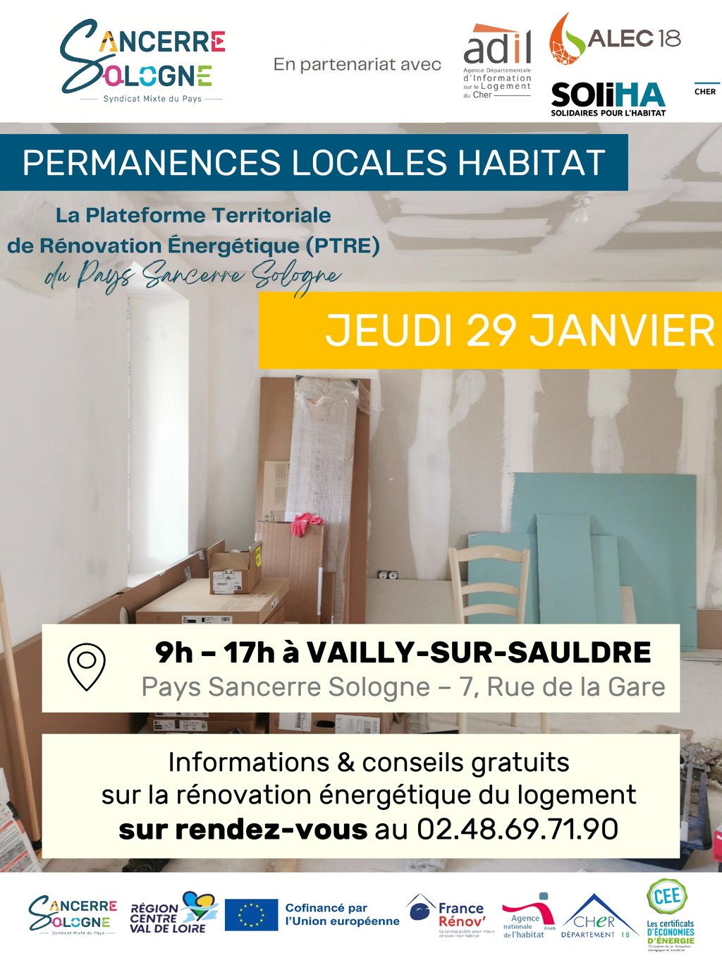 Pour rappel, nos partenaires ALEC18, ADIL du Cher et SOLIHA assurent des missions d’information et de conseil sur les projets de rénovation de l’habitat (rénovation énergétique, adaptation du logement, aides financières, questions juridiques, etc.).