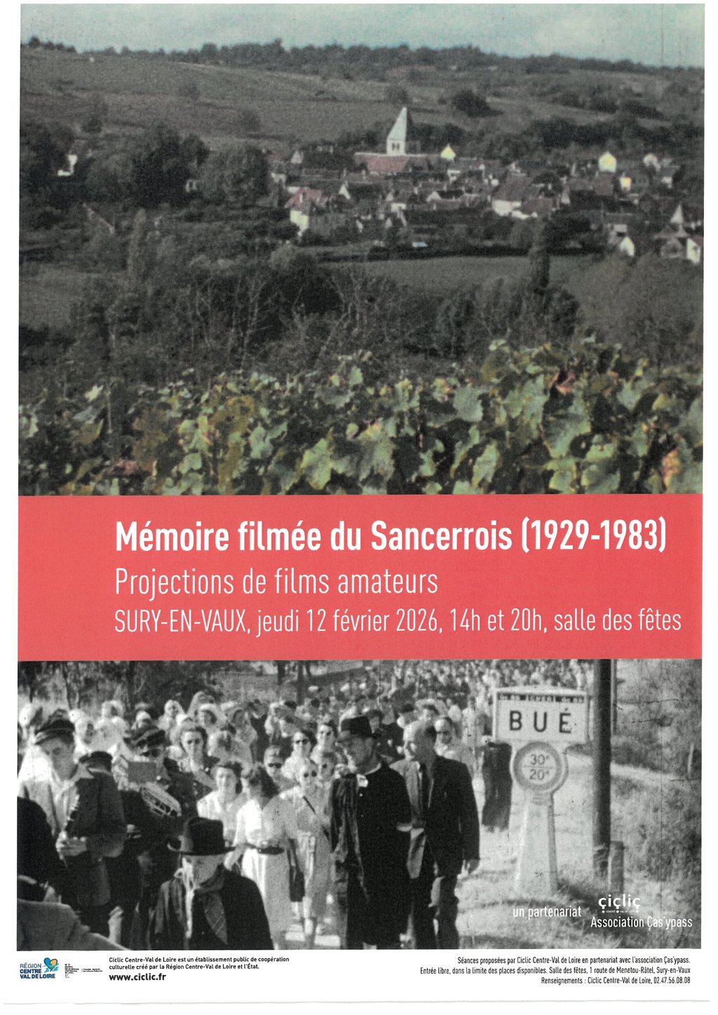 MÉMOIRE FILMÉE DU SANCERROIS (1929 - 1983) JEUDI 12 FÉVRIER 2026 - 14H ET 20H - SURY-EN-VAUX - SALLE DES FÊTES