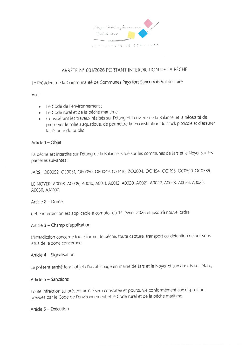 ARRÊTÉ INTERDISANT LA PÈCHE ÉTANG DE ...