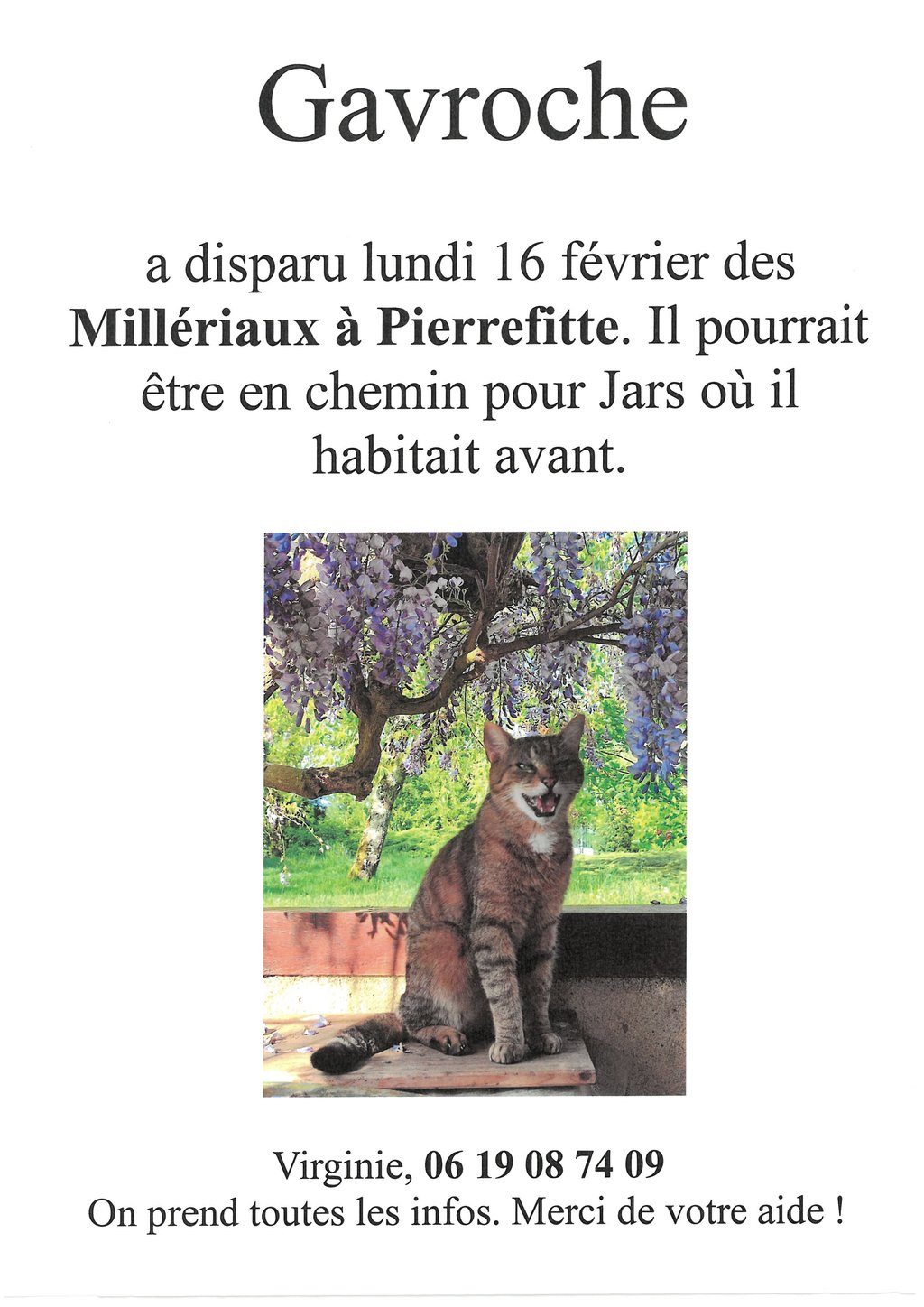 AVIS DE RECHERCHE GAVROCHE CHAT TIGRÉ