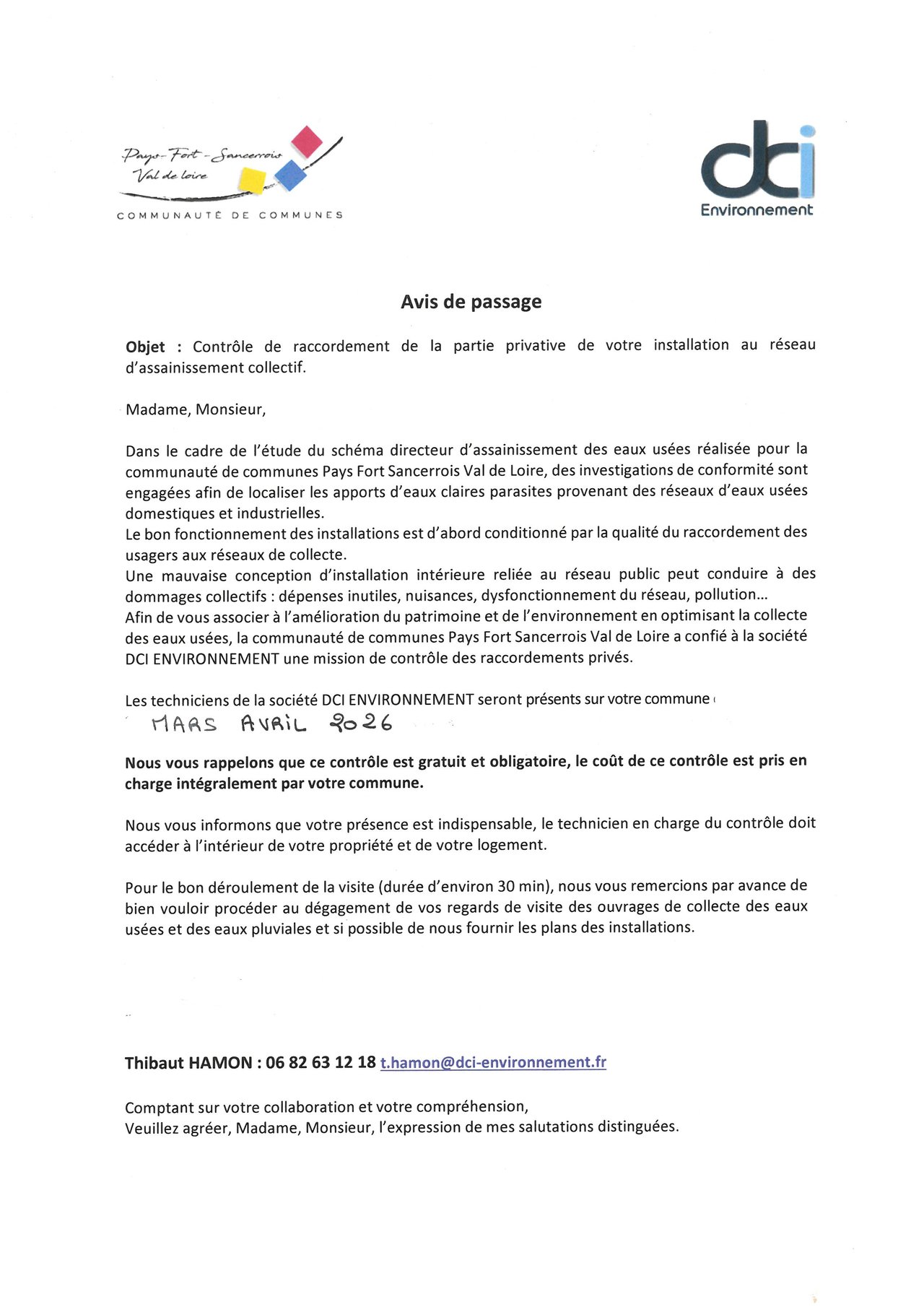 PASSAGE SOCIÉTÉ DCI ENVIRONNEMENT CONTRÔLE ASSAINISSEMENT COLLECTIF