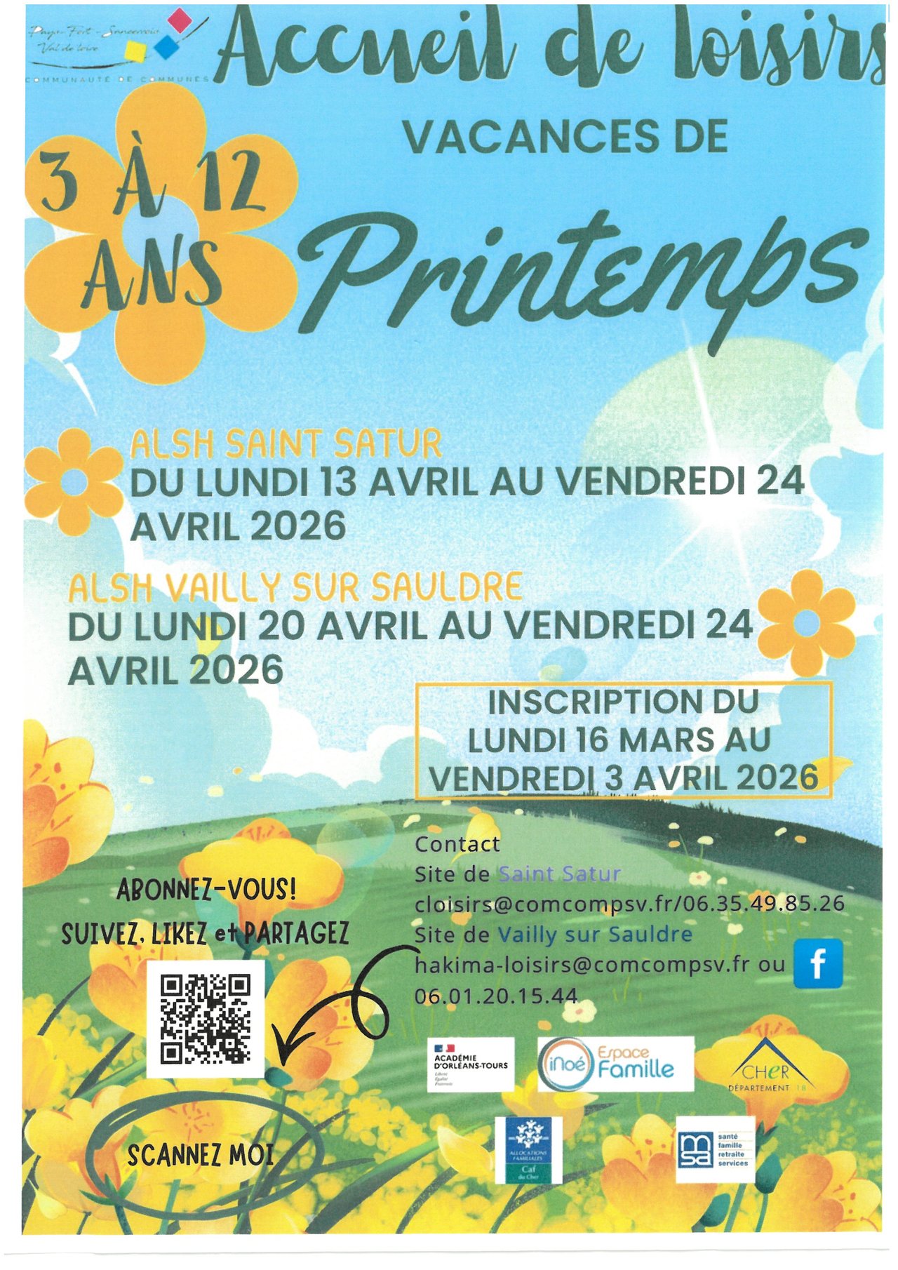 VACANCES DE PRINTEMPS ACCUEIL DE LOIS...