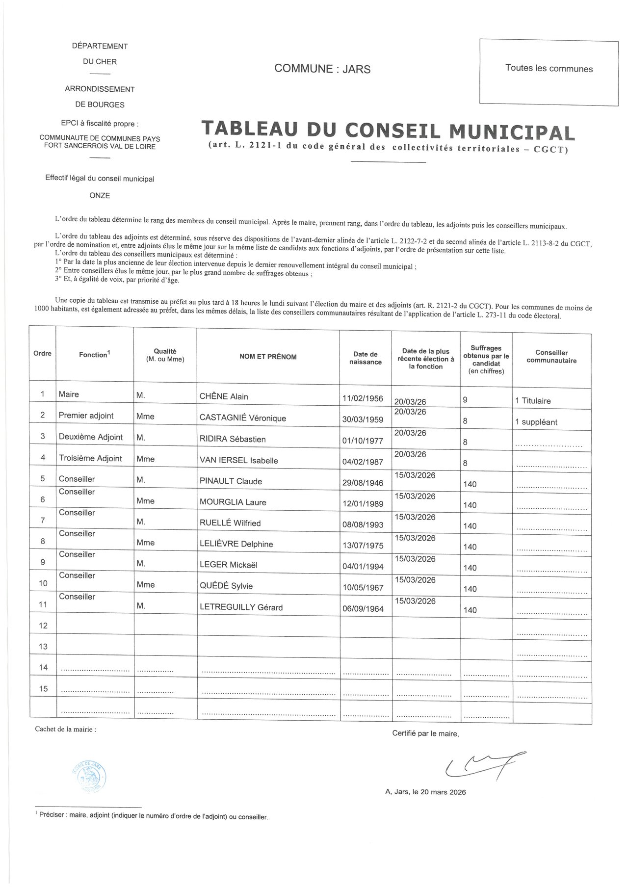 TABLEAU DU CONSEIL MUNICIPAL