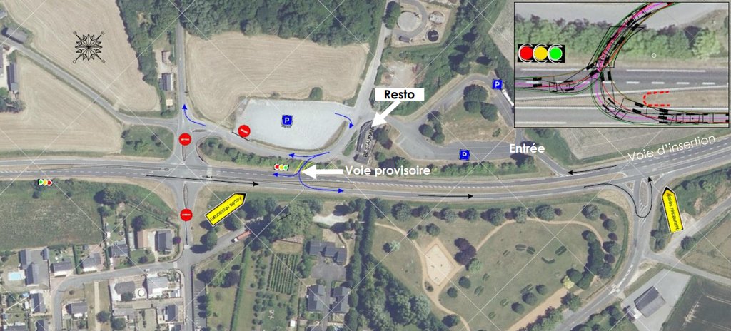 Sur l’axe Baugé-Seiches (RD766), l’entrée se fera uniquement depuis la voie d’insertion à l’Est côté Echemiré.