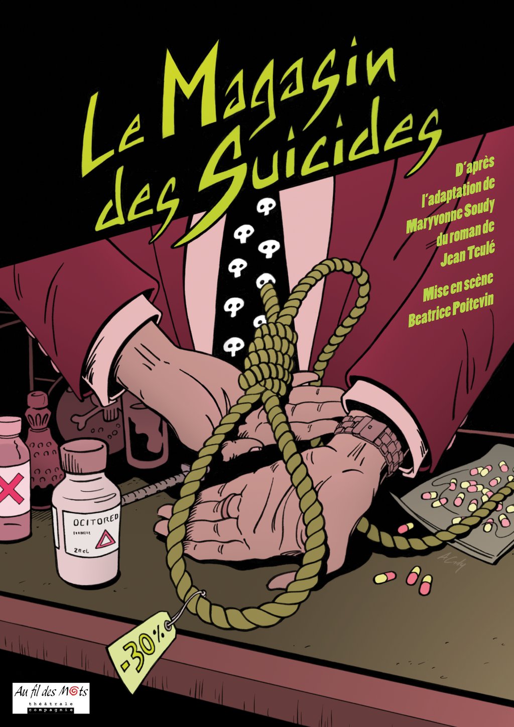 Vous avez raté votre vie, réussissez votre mort ! Une ville dans laquelle les gens n’ont plus goût à rien… si bien que la boutique la plus florissante est celle de la famille Tuvache où l’on peut tout trouver pour se tuer de toutes les façons possibles. Mais la naissance du petit dernier avec sa cruelle joie de vivre va bouleverser les habitudes de la famille. Une farce déconcertante, à l’humour noir, aussi absurde que drôle.