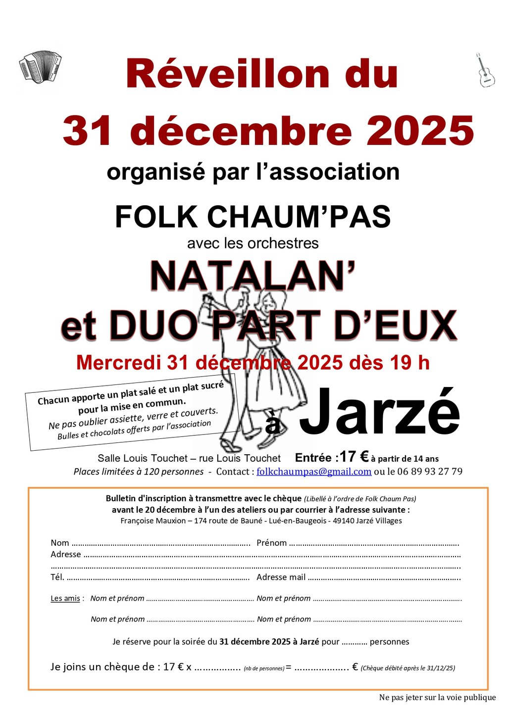 L'association FOLK CHAUM'PAS organise un réveillon le 31 décembre 2025.
