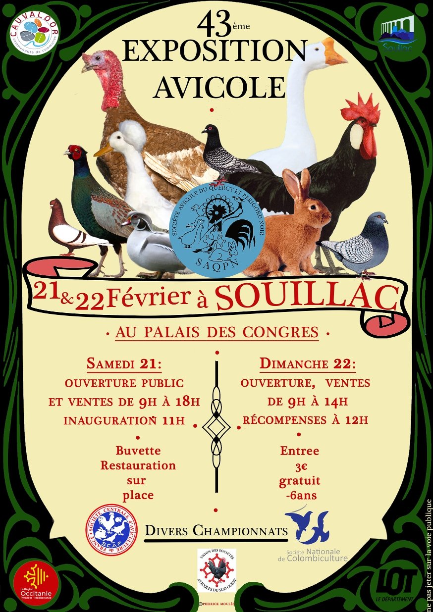 2 jours d'exposition avicole proposé par la Société Avicole du Quercy et Périgord Noir