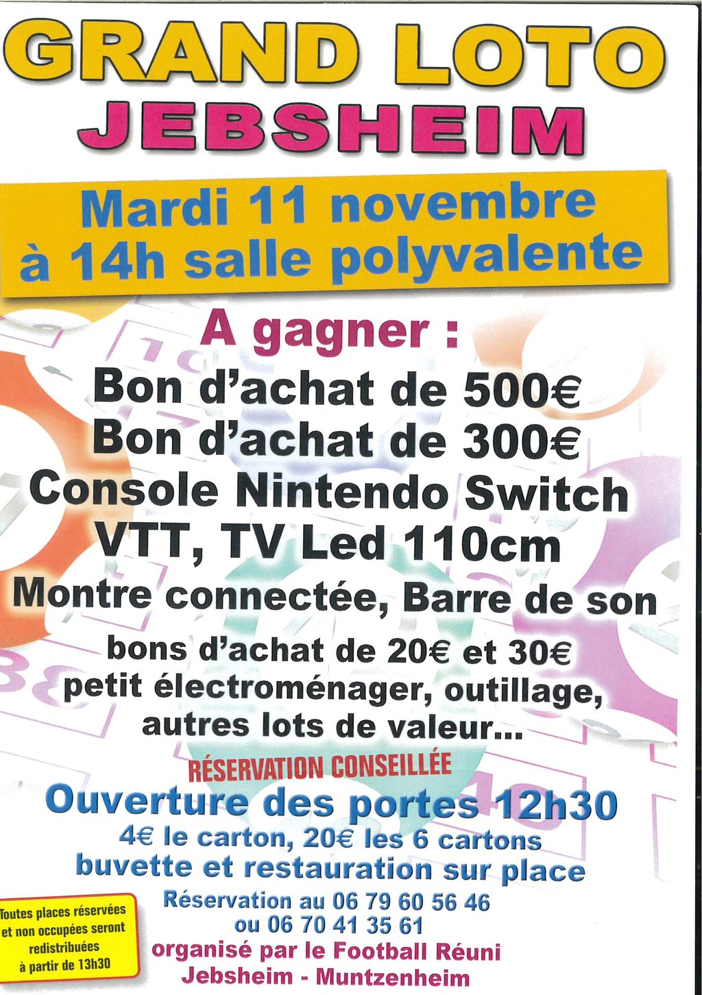 Grand Loto organisé par le Football Réuni Jebsheim-Muntzenheim