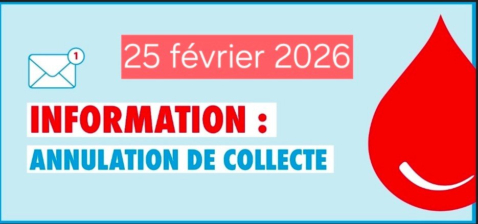 Nous avons le regret de vous informer que nous sommes contraints d’annuler la collecte de HIRTZFELDEN prévue le mercredi 25 février, en raison d’une absence inopinée de personnel médical indispensable à la bonne tenue de cette collecte. Nous comprenons que cette annulation puisse être source de désagréments et nous en sommes sincèrement désolés.