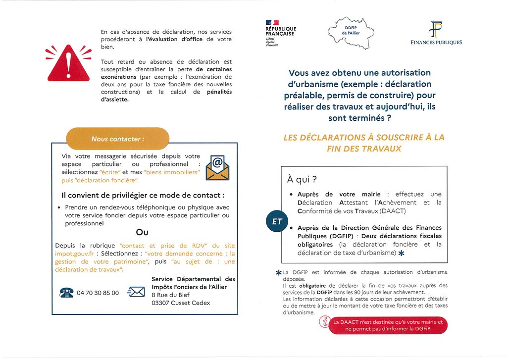 La DDFIP de l'Allier vous informe de vos obligations à respecter en fin de travaux d'urbanisme.