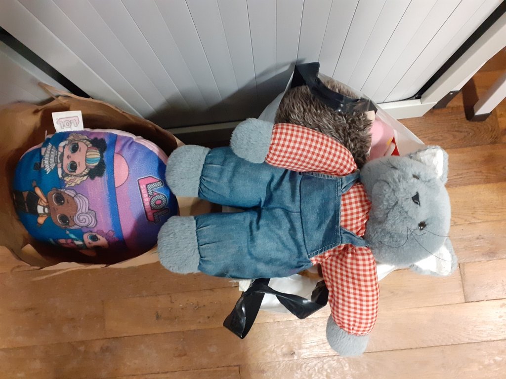 Un administré nous a apporté 2 sacs de peluches qu'il a trouvé sur un banc chemin des Gournais.