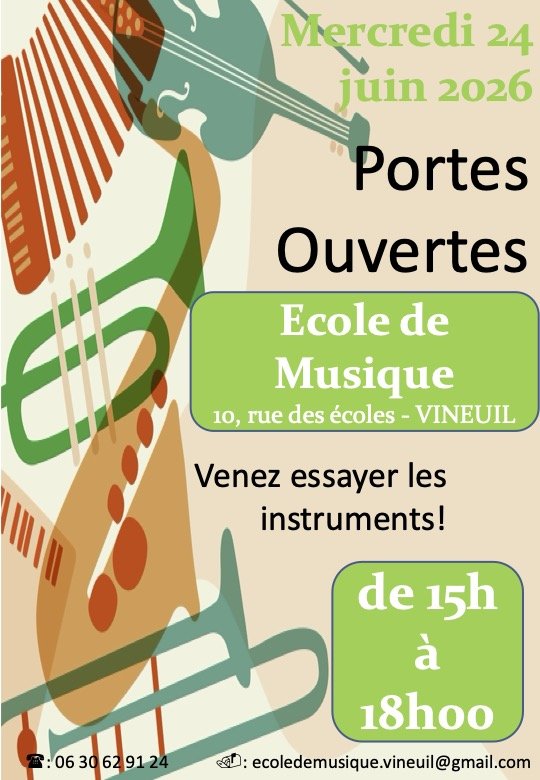 Renseignements au 06 30 62 91 24 ou ecoledemusique.vineuil@gmail.com